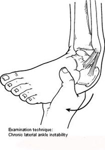 To diagnose this condition and determine if surgery is necessary, orthopedic surgeons perform X-ray and imaging studies while stress is applied to a patient's ankle to measure ligament elongation.
